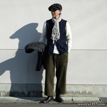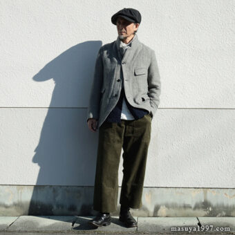 DjangoAtour “classic bakers wool jacket & frenchtwotuck indigocorduroy pants”