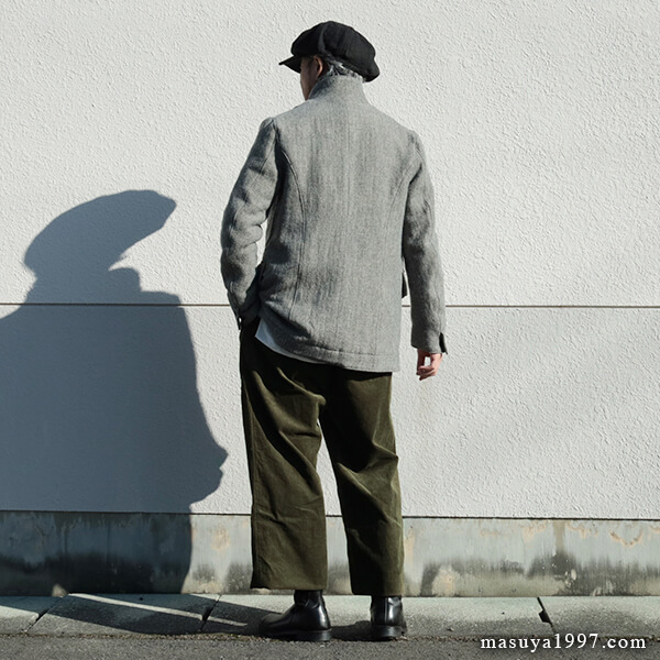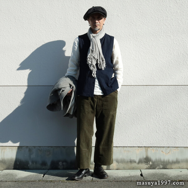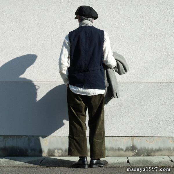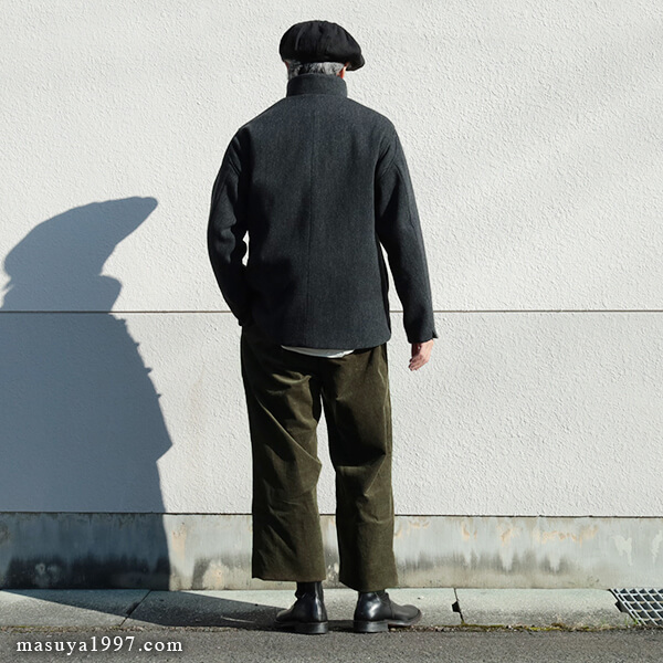 DjangoAtour “classic bakers wool jacket & frenchtwotuck indigocorduroy pants”