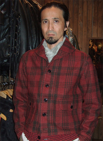 目の詰まった圧縮ウールの素材感と「枯れたノスタルジーな赤いチェック」の風合い... 画像ではなかなかうまくお伝えできませんが、とにかく渋〜くていい色合いなんです! さらに、ショールカラー、カフス、不思議なウエストバンド、ボタンフロント仕様などのディテール...もすごくいいんです。このウール製ジャケット『A-1』は、ほかにはない独特の雰囲気を持っています。