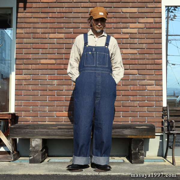 DURA-BILTの新作 “3 SERIES LOW BACK OVERALLS” <10oz DENIM / 31-LB> を穿いています。