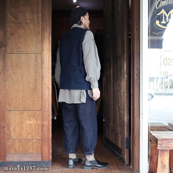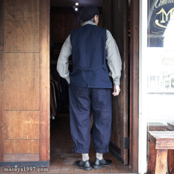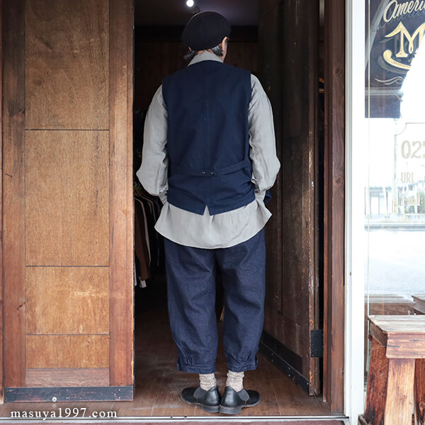 今日は、トップスに “classic frenchvoleurs wool jkt” と “classic artisanal indigo vest” を合わせています。