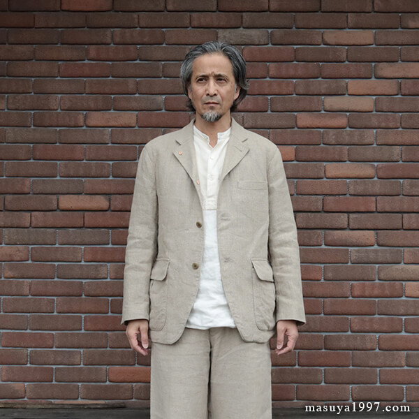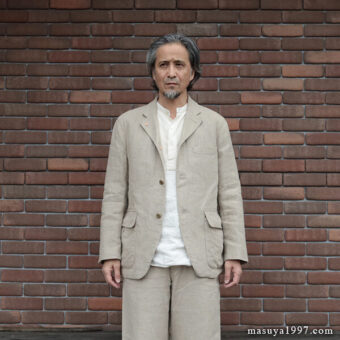 あたかも長年着込んだような脱力感と味わいのある佇まいを表現した「FARMERSシリーズ」。今回は、8番という非常に太いリネンで仕立てた、定番の NO,1 JACKETです。