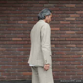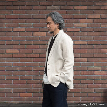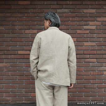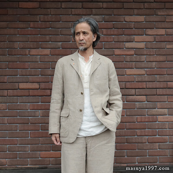 TAKE & SONSの新作 “8 LINEN FARMER’S No,1 JACKET” を着ています。