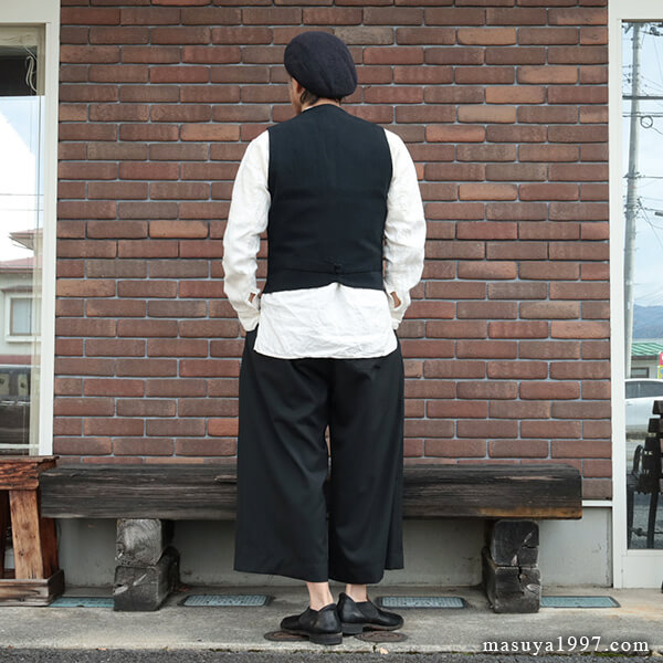 1900年代の籠売りの写真をモチーフに、フランスアンティークのハンドメイドスモックから着想を得て、生地や色合い、全体のバランスをジャーマンスタイルに仕上げた、ジャンゴらしい一枚です。今回のニッカーズとの相性も抜群!上にベストを重ねても雰囲気いいですよ。