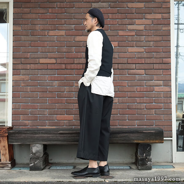 また、定番ワイドグルカ同様に、裾直しの丈の長さで様々な表情を楽しませてくれるパンツです。 着用画像では、短めに仕上げています。