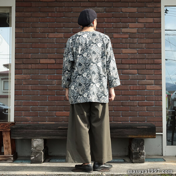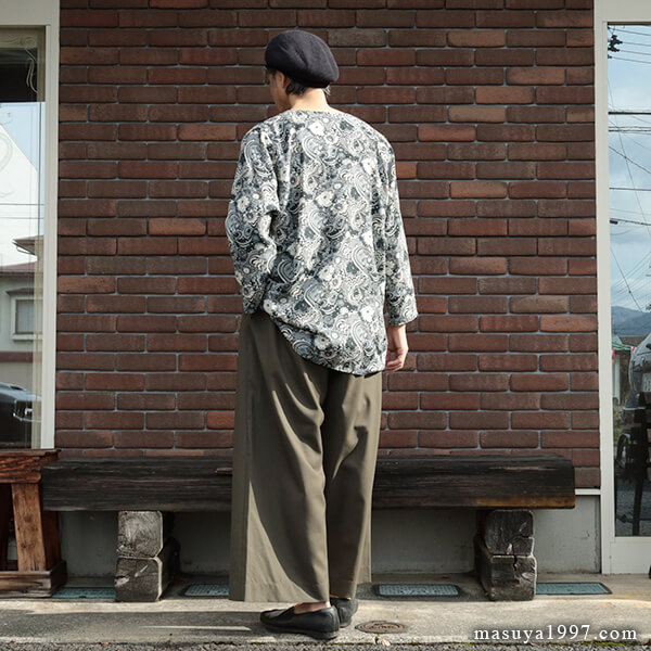 「ポワレ・シャツ」と名づけられた今作は、花・星・渦で構成されたアーティスティックなフラワーパターンの生地を採用。レーヨン・キュプラ・シルクからできた生地は非常に柔らかく滑らかな着心地です。独特のドレープ感と滑るような肌触り、そして繊細かつ大胆に表現された柄が魅力です。