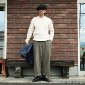 ボトムは、ジャンゴアトゥールの ウールリネンパンツ をチョイス。シャツ や ベスト もジャンゴです。