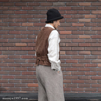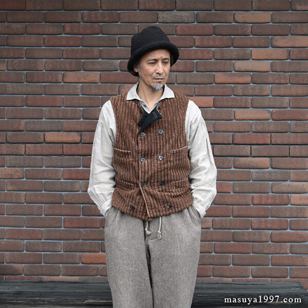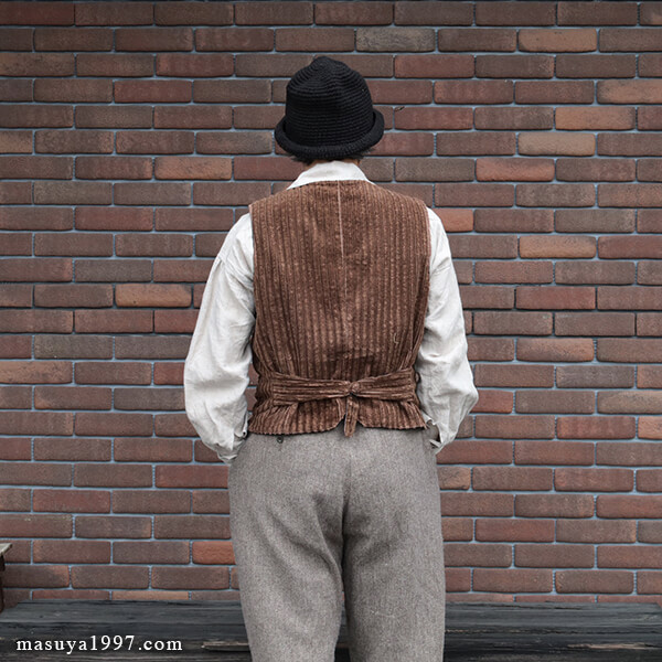 “1900s Jambo Cord Bohemian Vest” brown・black, size-40