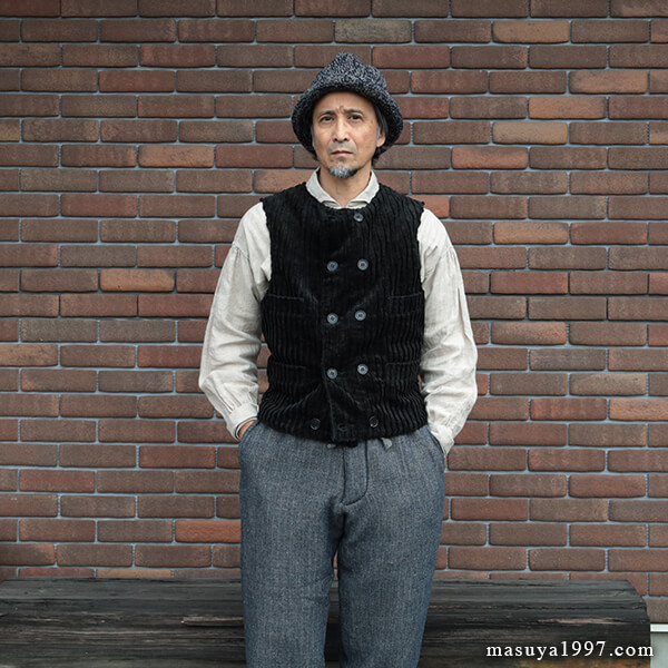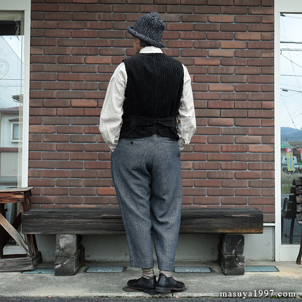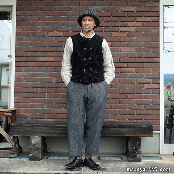 DjangoAtour “classic bakers wool jacket & frenchtwotuck indigocorduroy pants”