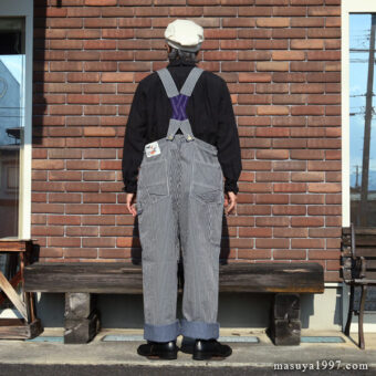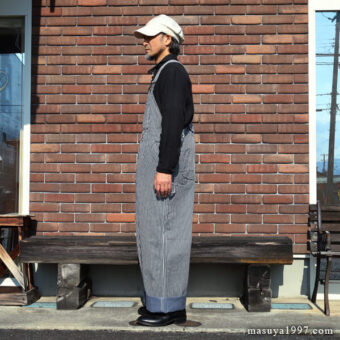 DURA-BILTの新作 “3 SERIES LOW BACK OVERALLS” <EXPRESS STRIPE / 37-LB> を穿いています。